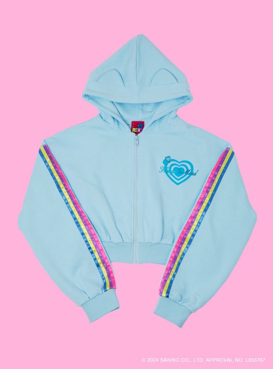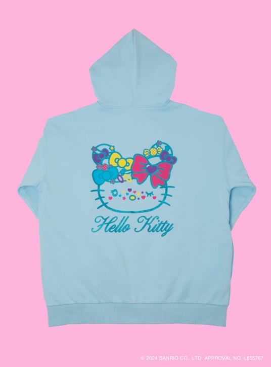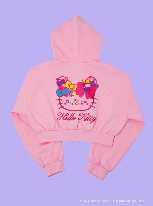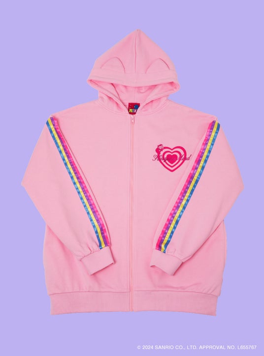 ハローキティが原宿仕様にデコラしたスペシャルコラボレーションで、可愛いワンピースやパーカーのほか、ハローキティのトレードマークであるリボンのファーブローチやカラフルなピンなどの商品を展開。